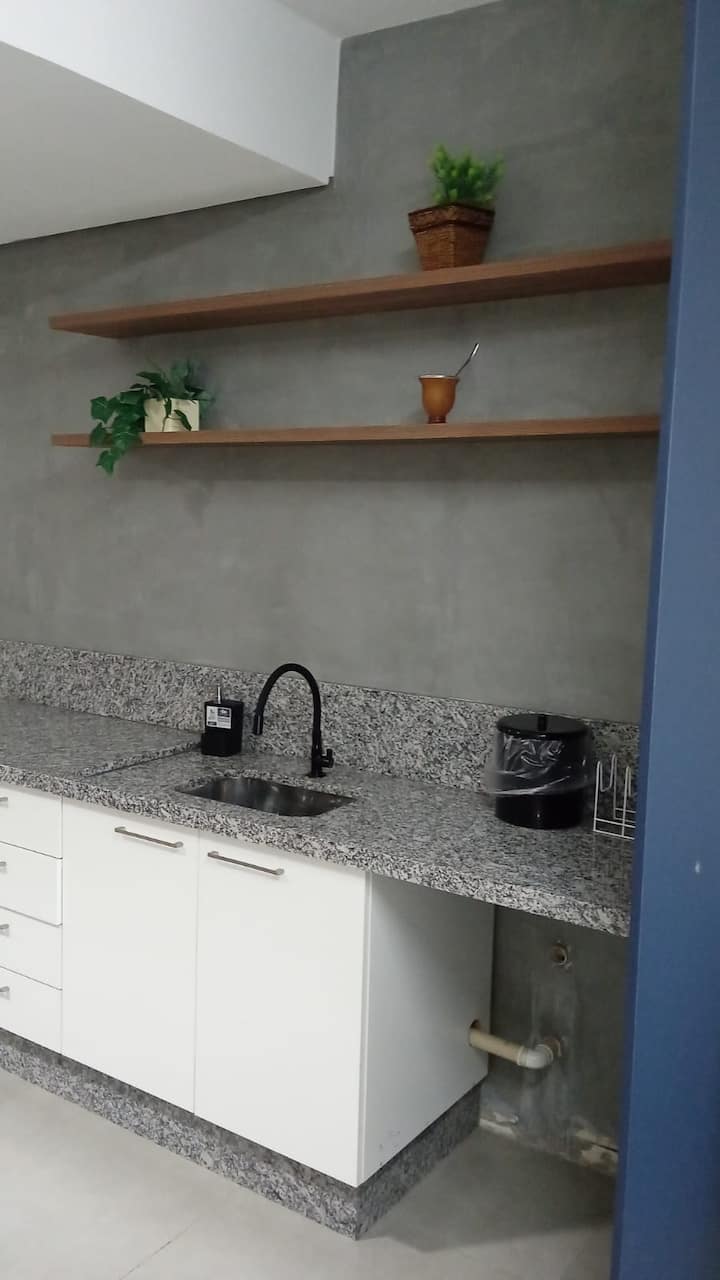 O Loft 12 é nossa mais nova adição, oferecendo espaço amplo com cozinha completa e área de estar separada. Perfeito para quem busca conforto e praticidade durante a estadia em Cascavel, com mesa de trabalho dedicada e ambiente moderno.
