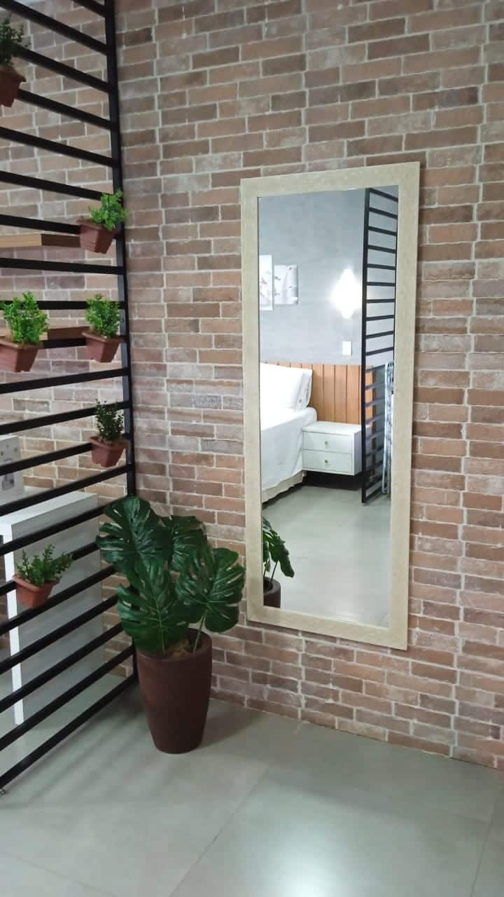 Parede de tijolo aparente e estante industrial